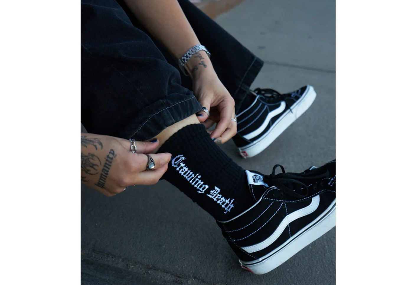 No skate fit is complete without the right accessories, and Crawling Death has the goods to elevate your style. Top off your look with one of their signature beanies featuring the iconic barbed logo to keep you warm and looking fresh.