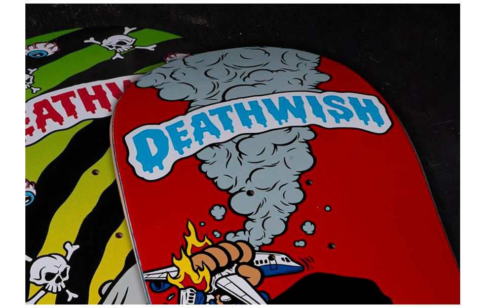 Deathwish decks bring aggressive shapes, classic popsicle cuts, and striking graphics. Built to take hits and keep rolling.