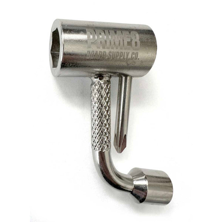 Prime 8 Coin Pocket Skate Tool Silver is a compact skate tool designed to fit neatly in your coin pocket.