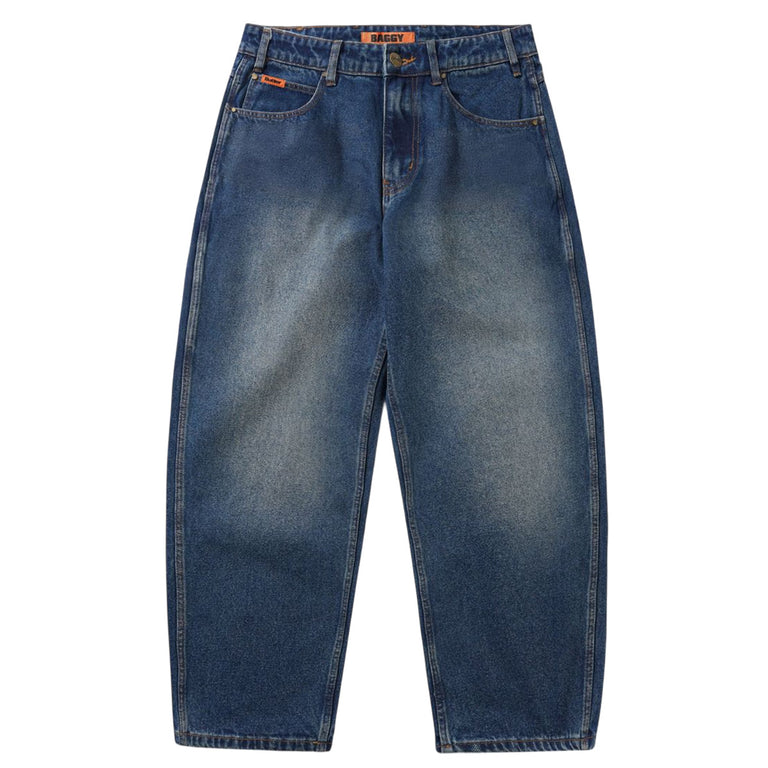 The Butter Goods Baggy Denim Jeans in Distressed Indigo bring loose fit denim with classic skate detailing.