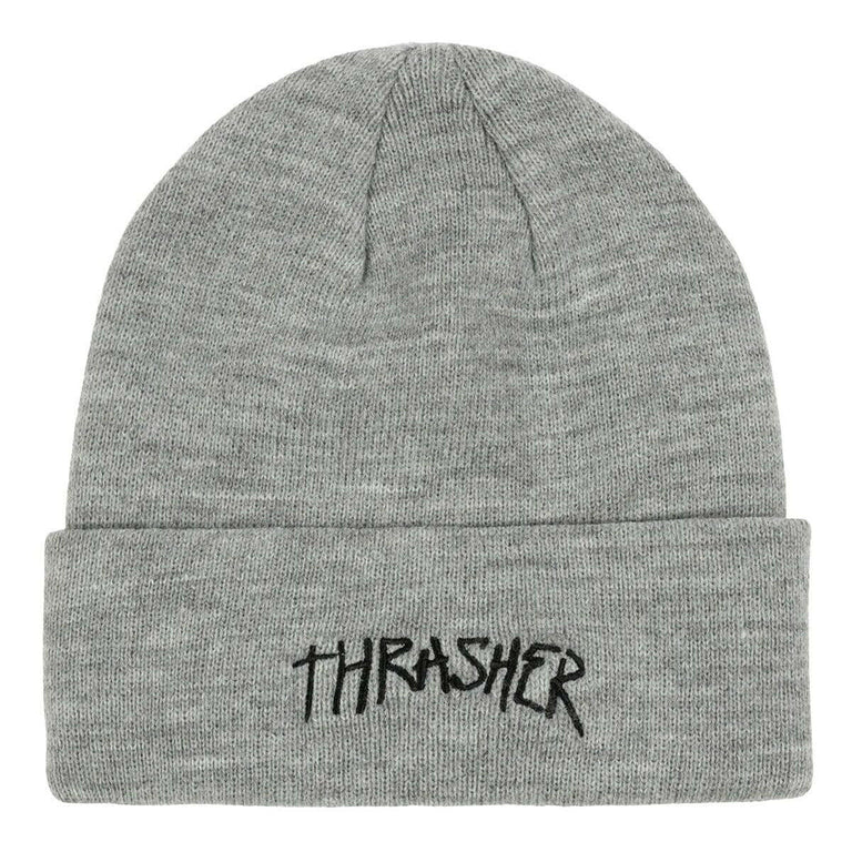 The Thrasher Sketch Beanie Grey brings artist flair to a classic skate beanie: